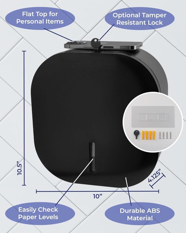 - Holds Large Capacity 9-inch rolls – Reduce the need for frequent roll replacements and ensure continuous availability with this jumbo toilet paper dispenser wall mount.